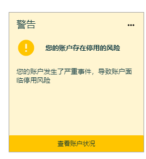該警告明確提出,賣家的賬號發(fā)生了嚴(yán)重事件,造成 賬號面臨著停止使用風(fēng)險(xiǎn)。