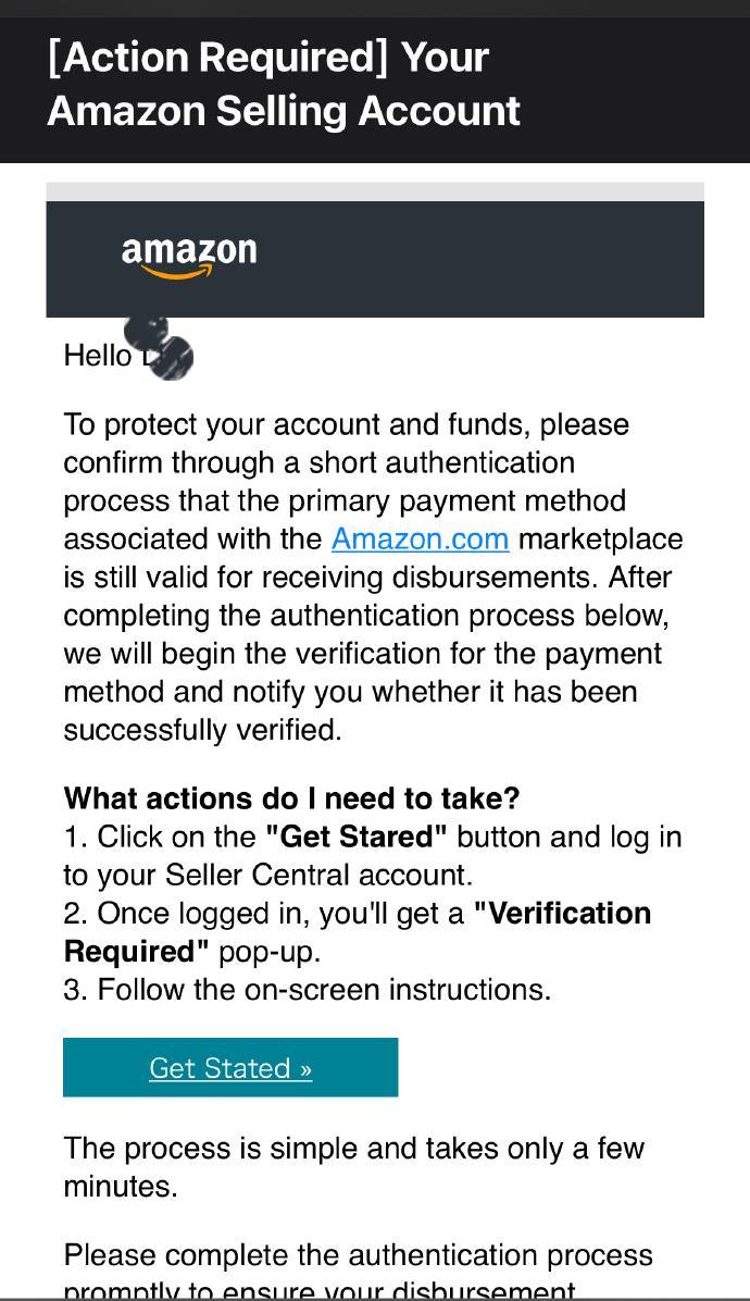 根據(jù)郵件,賣家需通過一個(gè)簡短的認(rèn)證過程來檢驗(yàn)其存款方式:一、點(diǎn)擊郵件頁面上的“開始”按鈕并登錄賣家的Seller Central賬戶;二、登錄后,將會(huì)出現(xiàn)“驗(yàn)證要求”彈出框;三、依照屏幕上的說明完成這個(gè)過程。