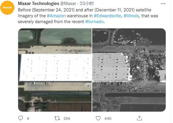 衛(wèi)星圖顯示龍卷風(fēng)襲擊亞馬遜倉庫前后驚人對(duì)比